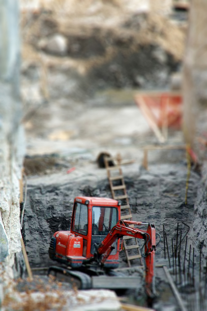 TiltShiftDigger August 29, 2011 | drawandshoot This is a digger from the construction site. I have added a tilt-shift technique in Photoshop which gives it the appearance of a toy.
