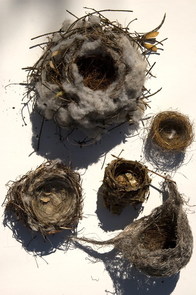 So I have a little nest collection. Yes, along with collections of rocks and decaying leaves… but you have to admit they are pretty cool. And all so different. I don’t know what birds built all these nests but everyone does it their own way. Little architectural gems. (Click to enlarge images.)