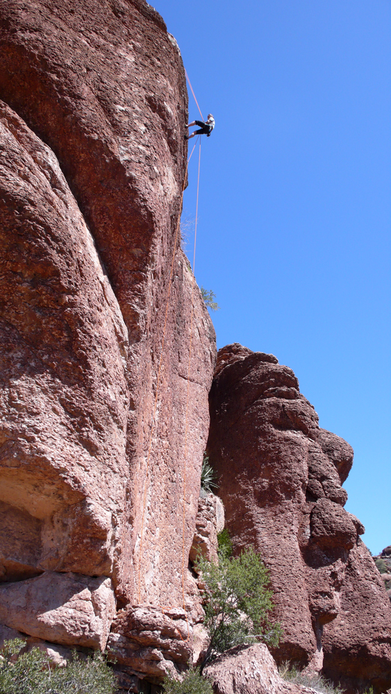 But I wonder, this climber is not simply abseiling. Has he climbed to the top and
