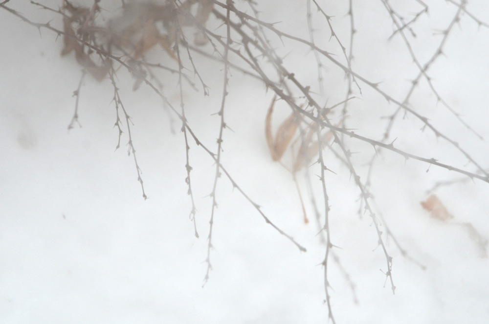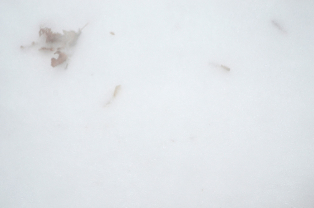 2. One might imagine the fog or vapor of one’s breath on the camera’s lens or the window from which you looked and saw the leaves in the snow…beautiful…slightly removed from the daily realm because of the fog…so nice. Thank you.