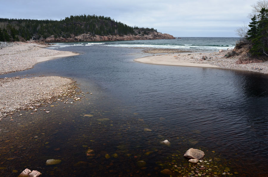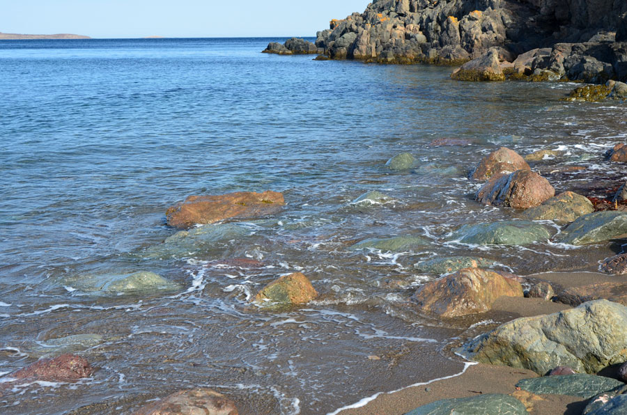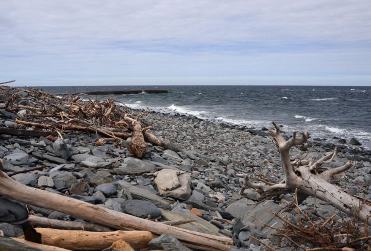 The boulder scattered beach at Black Brook Cove.