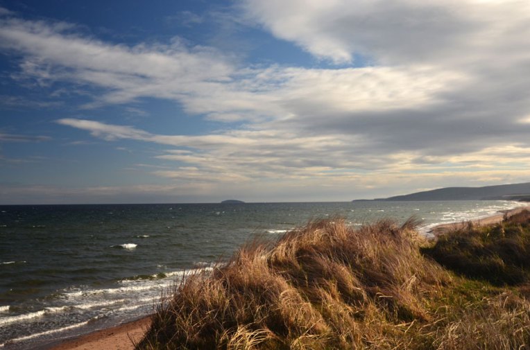 A tufted sand dune at Inverness Beach, looking out into the Gulf of the St. Lawrence.