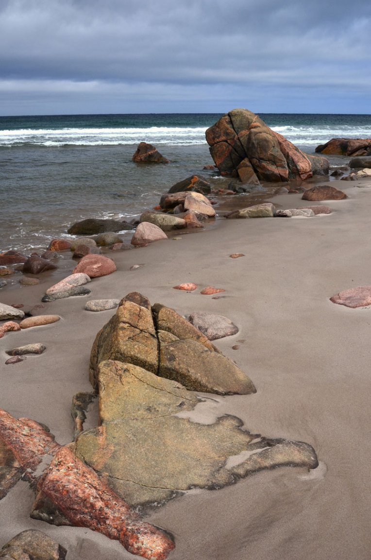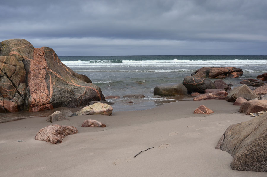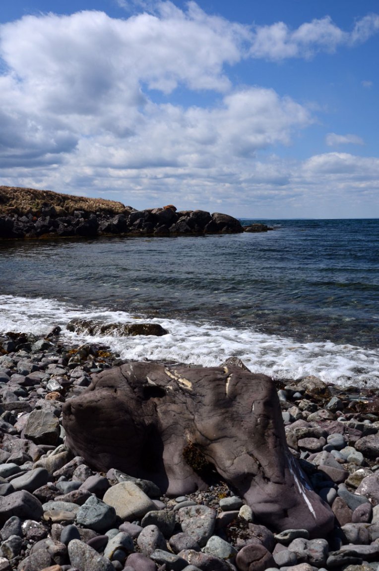 There are many tucked away cobble and sandy beaches between the rocky outcroppings along the shorelines of Isle Madame. A visual feast of shifting textural beauty.