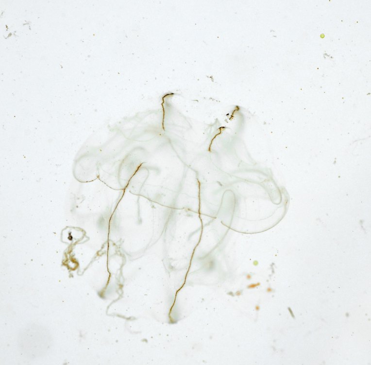 In the first image the jelly is inverted and at rest, sort of folding back on itself. I like how it’s so abstracted and looks somewhat like a drawing.