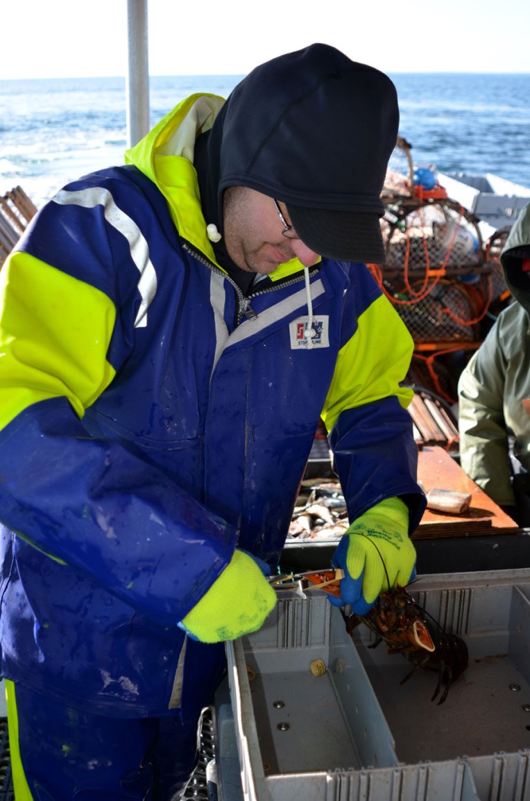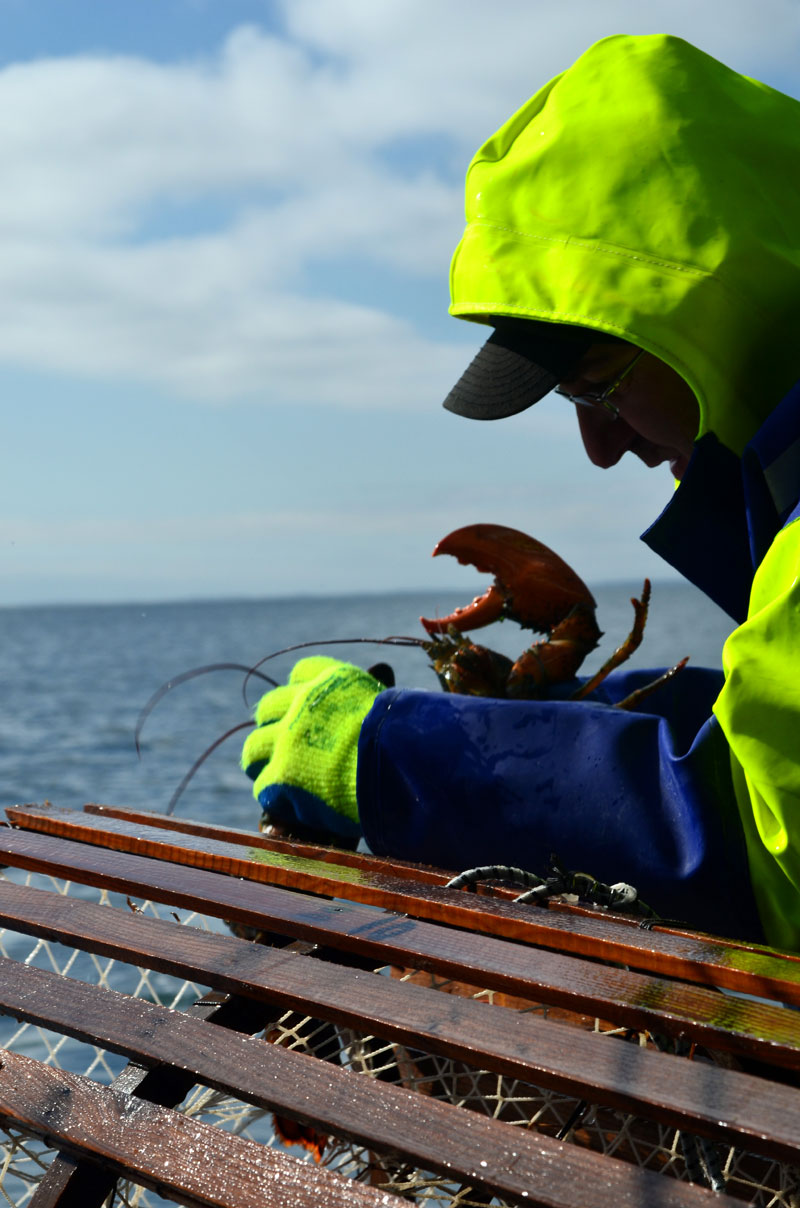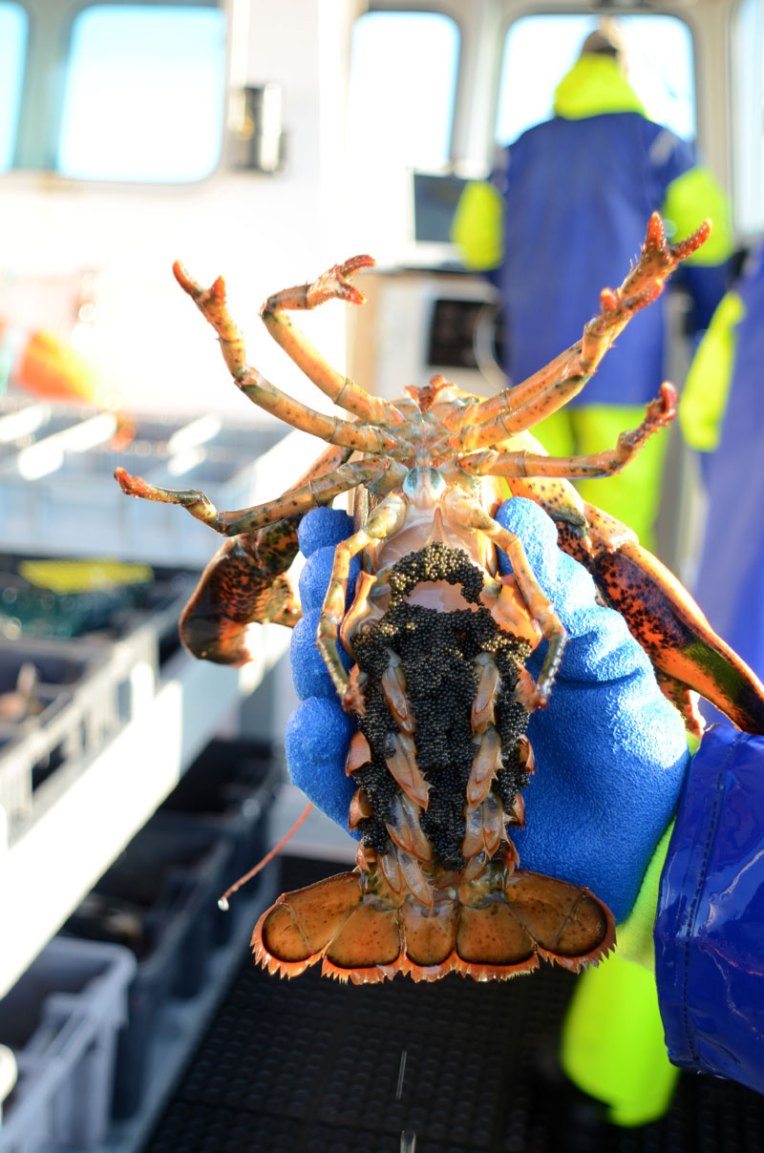 There are strict rules about the size and condition of lobsters that can be kept. Female lobsters with eggs have to be returned to the sea; as do unhappy looking codfish that accidentally get caught in the traps.