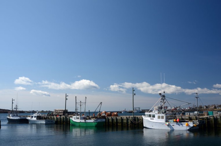 Above:Lobster boats in Petit De Grat being prepared for the fishing season.