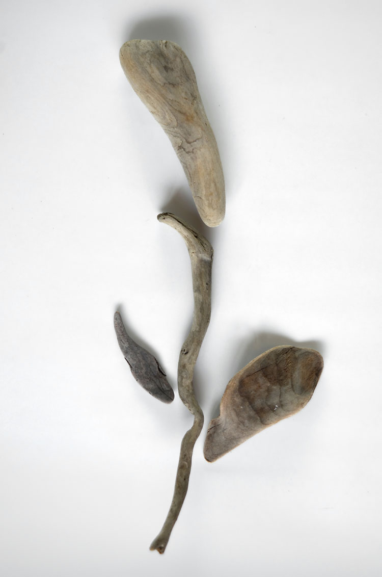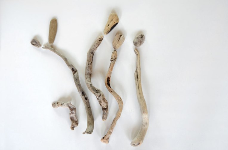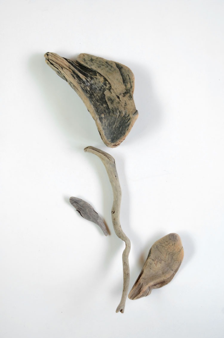 These smaller driftwood pieces have been arranging themselves into little works of art. They are pieces infused with salt air and salt water. Wood that has traveled the sea.