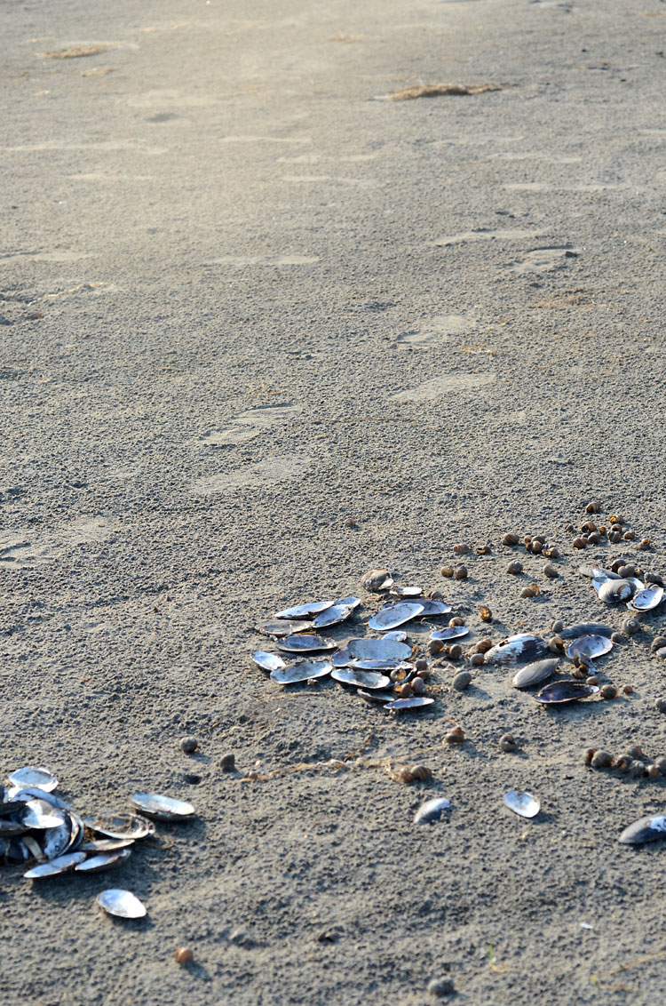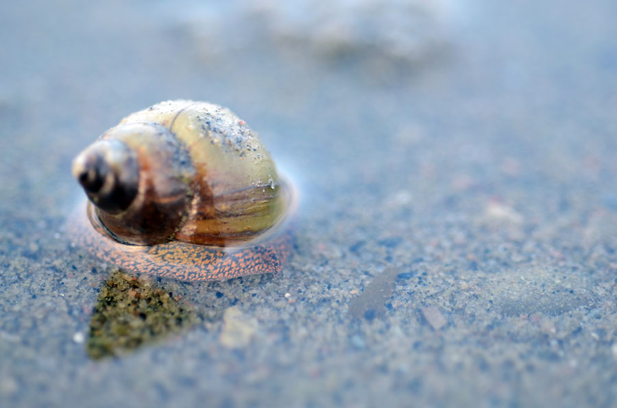Some snails are out in the wet sandy areas in the evening and early morning, as the day becomes too warm they work their way down into the sand and disappear.