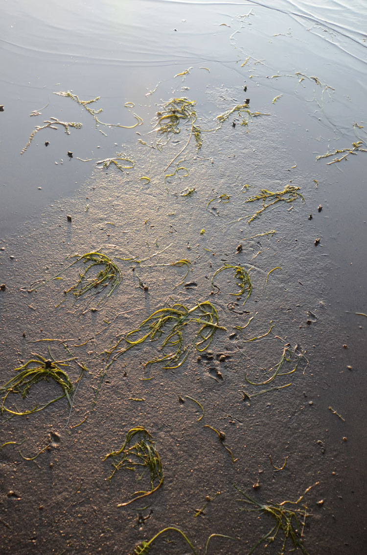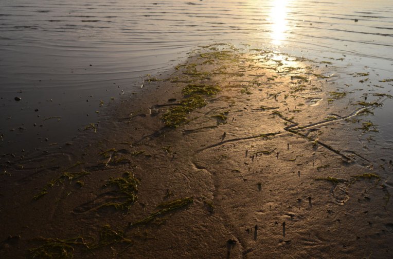 Days and days of radiant sun and what seems like weeks of no rain. The grass is brown and crunchy underfoot. Dormant. A wilting heat that makes everything close up on itself. Even the river is thirsty and shrinking away from the shoreline. I am not the only one wandering in the shallow waters.
