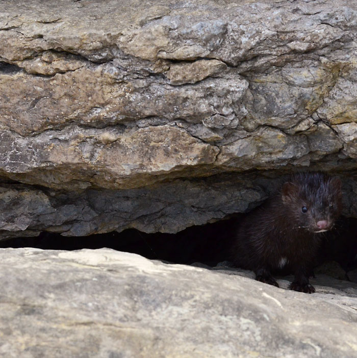The mink slipped away into a crevice. “Come”, I said gently. And briefly, it returned.