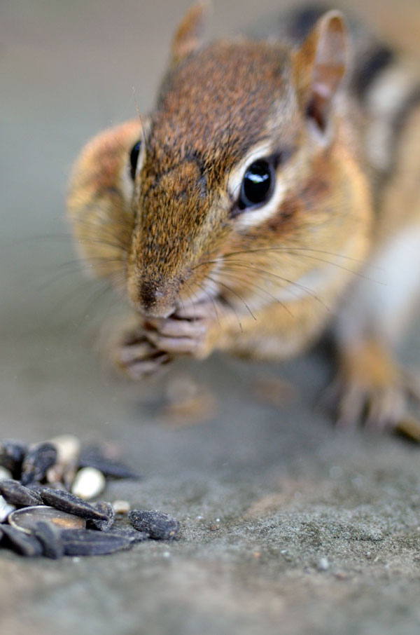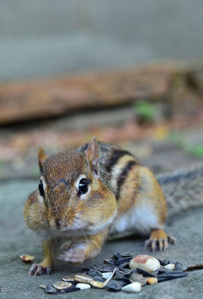 Our backyard chipmunk. Simultaneously bold and skittish.
