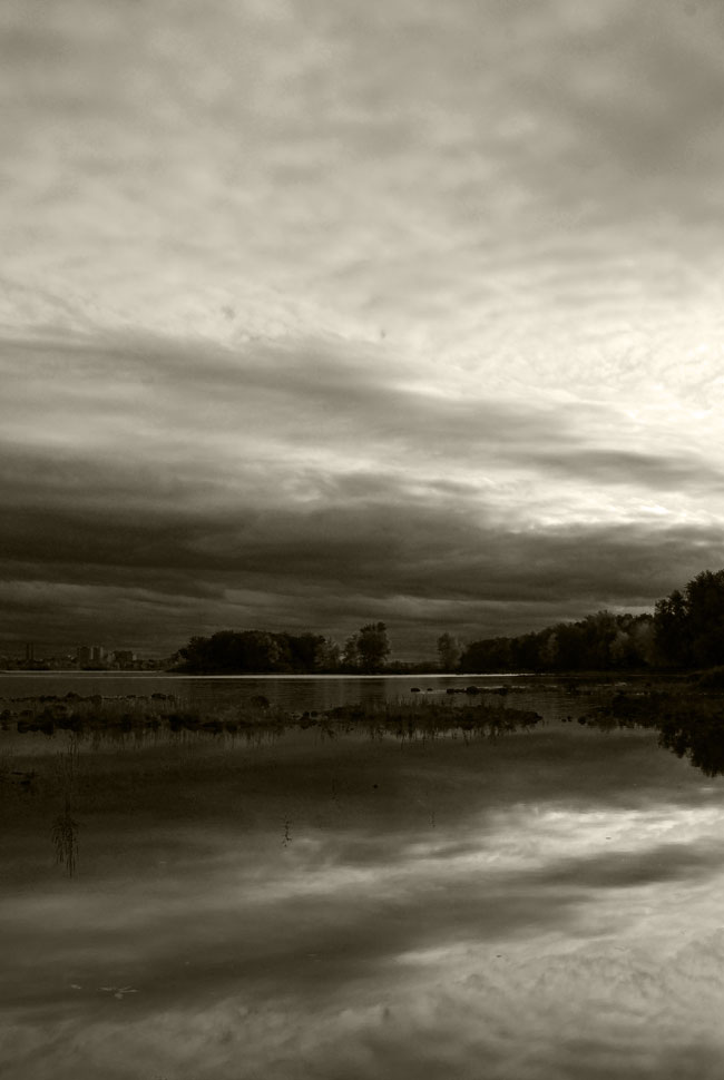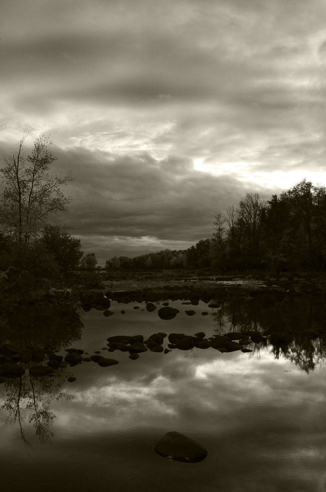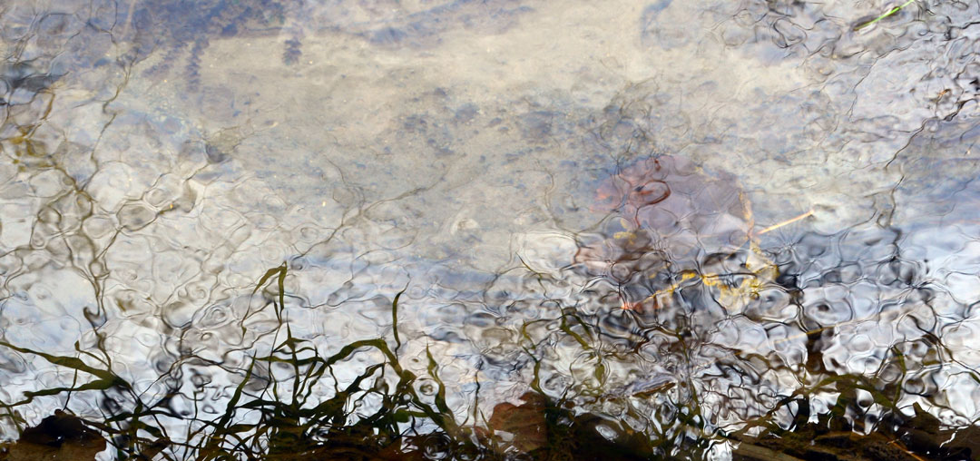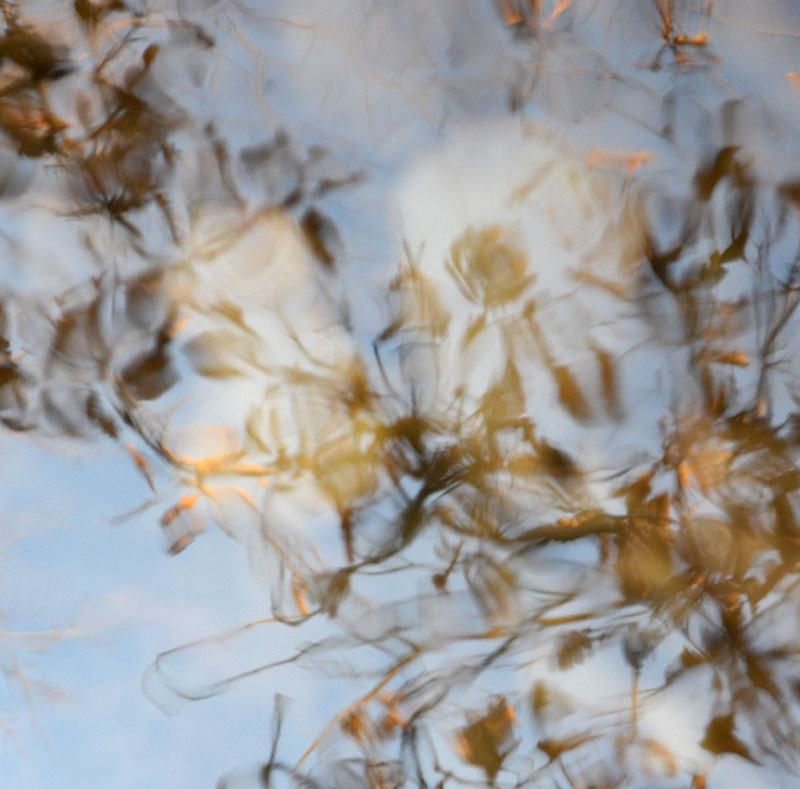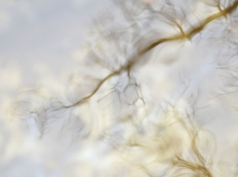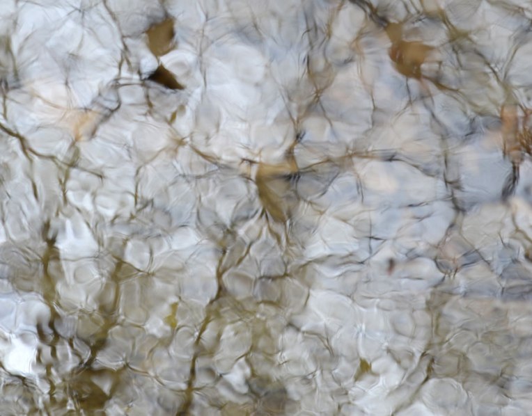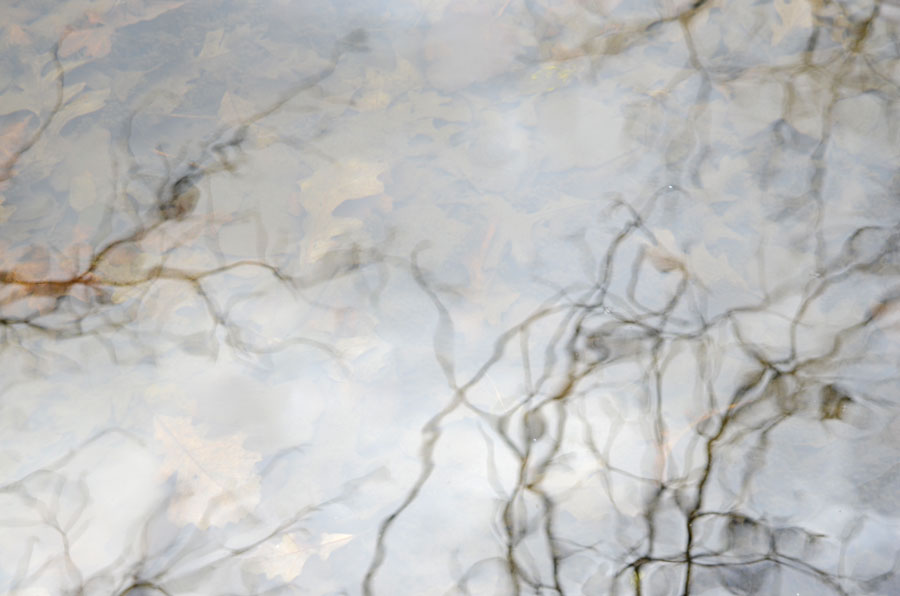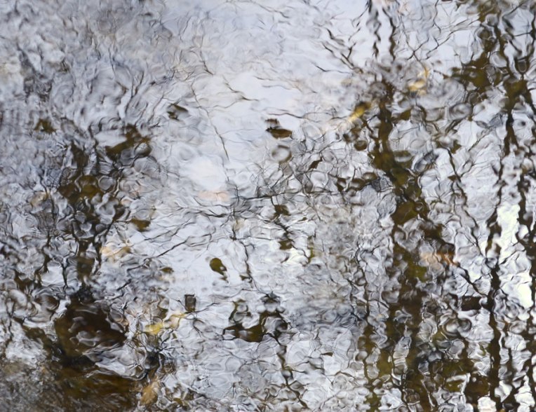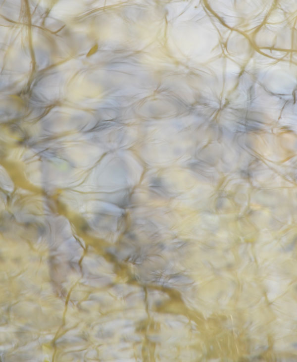 The colours are from yesterdays restless clouds and light, the silty bottom of the creek, and the branches and leaves reflected and simmering under the surface. The only post-processing I have done is a bit of cropping and slight level adjustments. And perhaps turning some things on their heads…