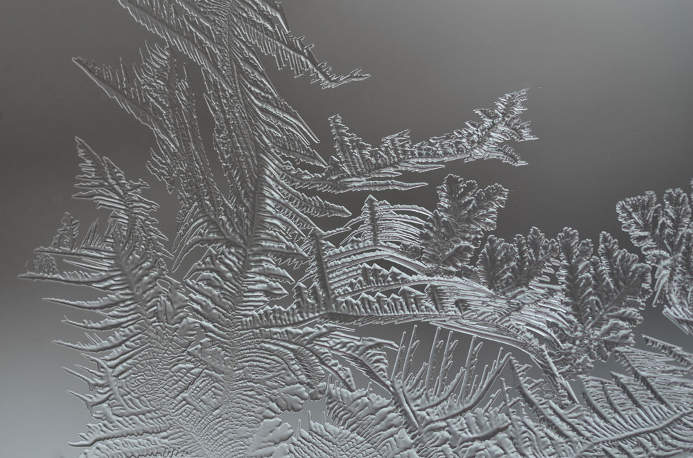 These are the delicate details of frost growth on a window. It has since warmed up here significantly and these icy apparitions have now vapourized but when I look at these images I find they are suggestive of elaborate gardens and graceful trees, Chinese landscape paintings and dragons.