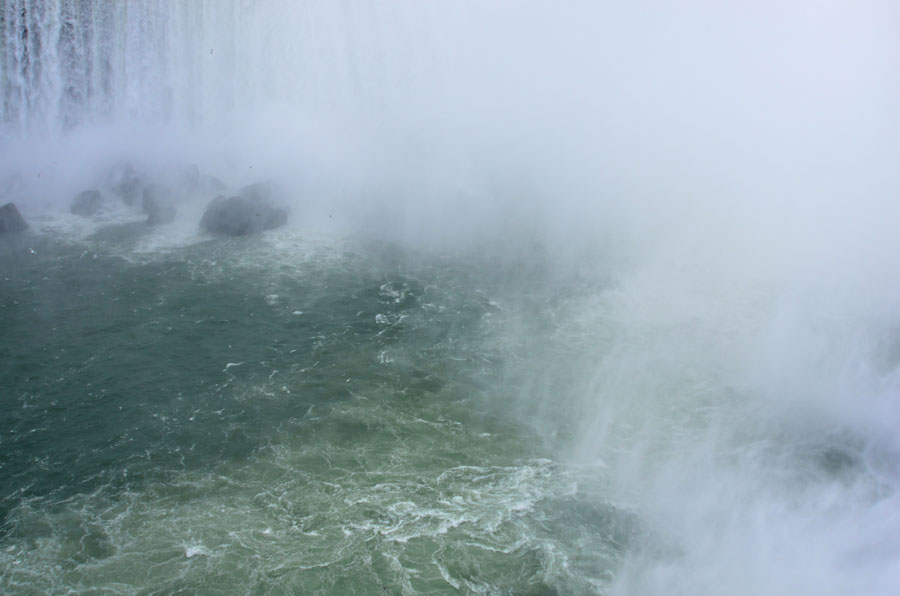It’s hard to fathom the scale of this place from these photographs but there are tiny avian specks in there – seagulls, actually – if you look very closely. The first image is layered and the second image is what the camera saw. This is the churning water at the bottom of a 165 foot drop.