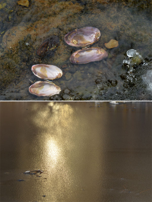 As it becomes very cold the landscape transforms in strange and wonderful ways. The ice forming at river’s edge is bordering on Seussian but I haven’t yet found a way to make good photographs. Photographs that show the magic of it. Part of the fun is trying to figure that out, I suppose. Anyway, if you are looking for gold and silver, it’s not far away. You just might have to dress warm.