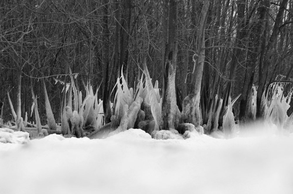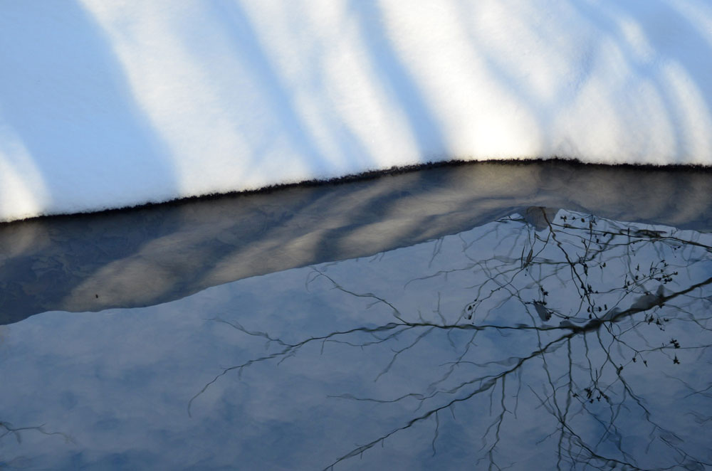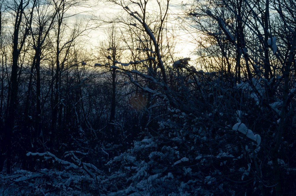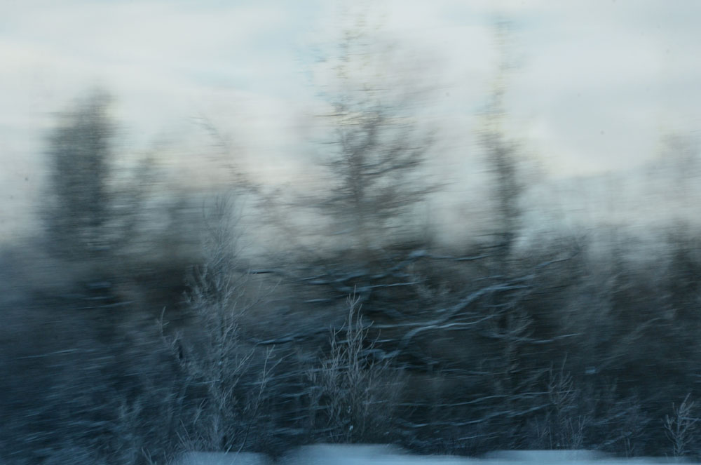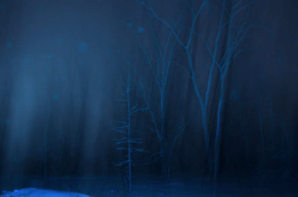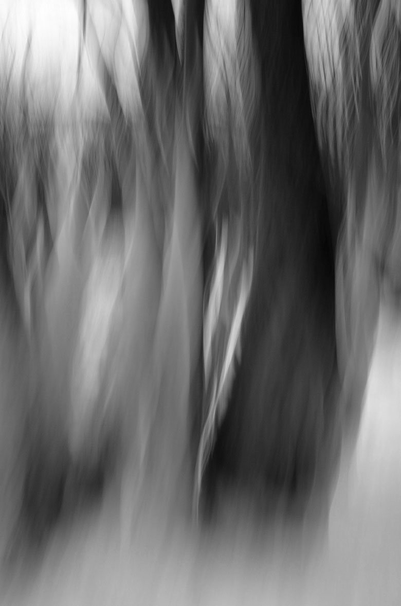 We have lost the snow ~ the light of winter ~ so I went back to look at some photographs from last year and found these; images made at night while a gentle snow was falling. These are in-camera double exposures, the first exposure is a still frame with flash (to catch the snowflakes), and in the second exposure camera movement was used to ‘sketch’ in the landscape. I have shifted the colour somewhat to make them look as inky as the night felt.