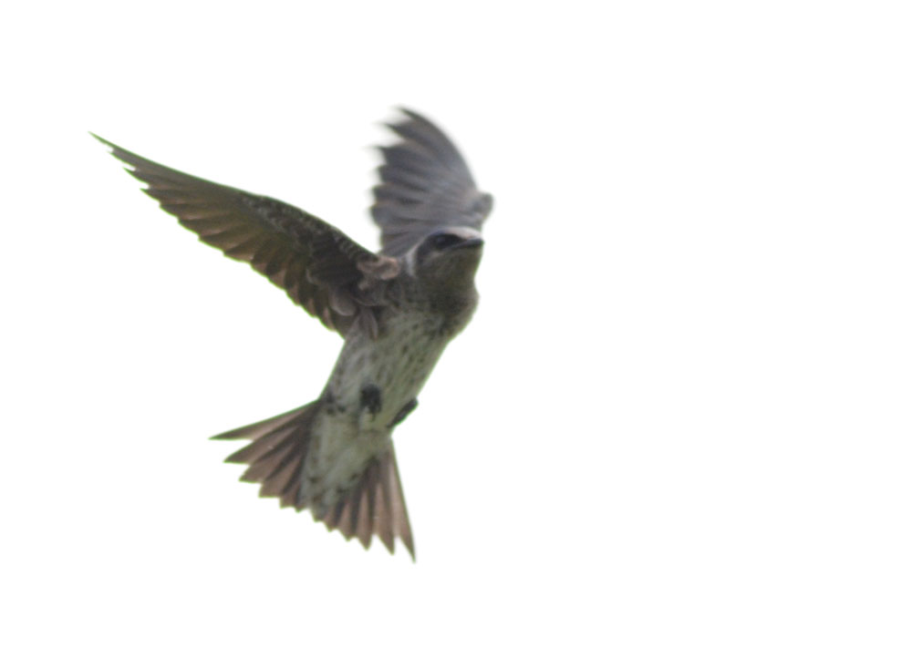 A lot can change in a couple of weeks. The landscape is now teeming with life and tender growth. Heatwaves and sunshine. The pace of change is almost dizzying. It’s hard to keep up with everything. I have had a chance to check in on the purple martins, though, who have returned from their far-away winter grounds in Brazil. They are busy catching insects, bickering, and setting up house for this year’s breeding. Pictured here is a female martin in flight.