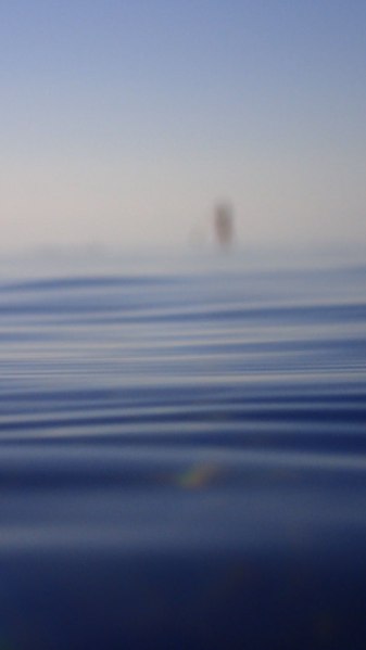 [Photographs made last week: A stand up paddle boarder (SUP) coming in and out of focus with a partially immersed camera. Georgian Bay, Ontario]