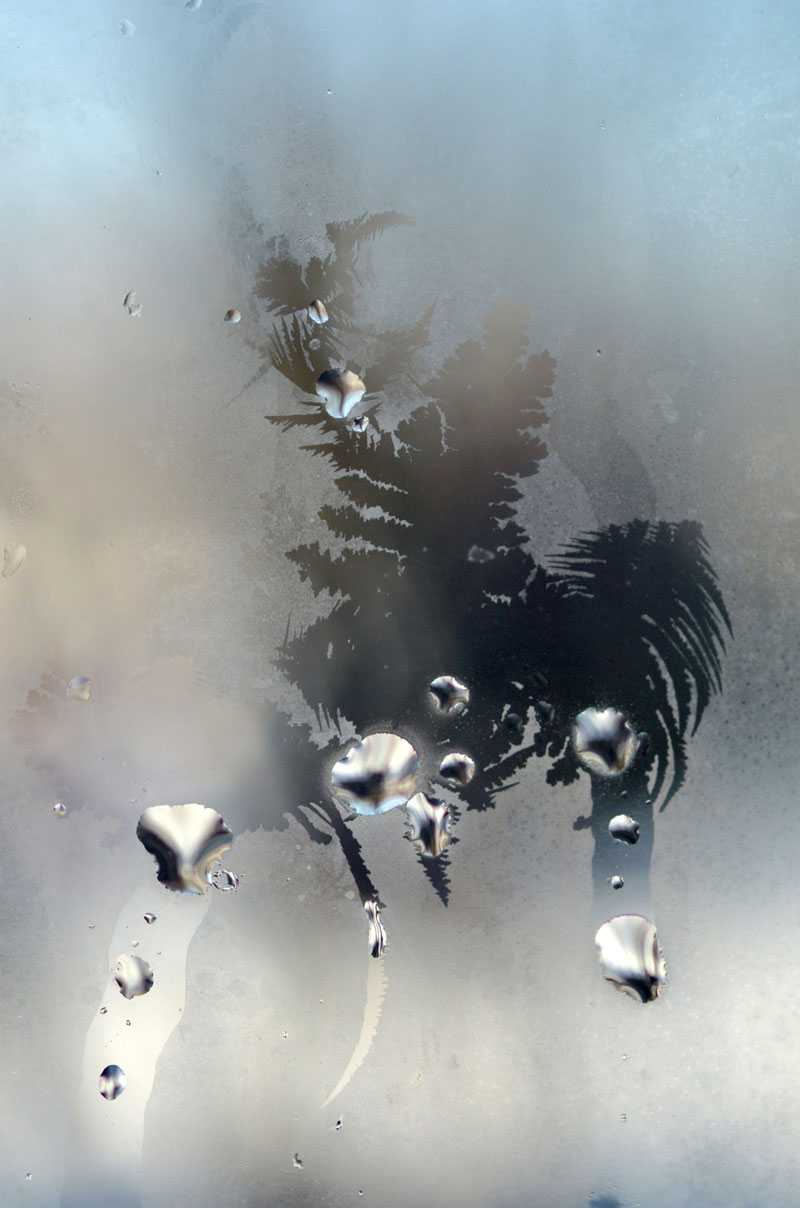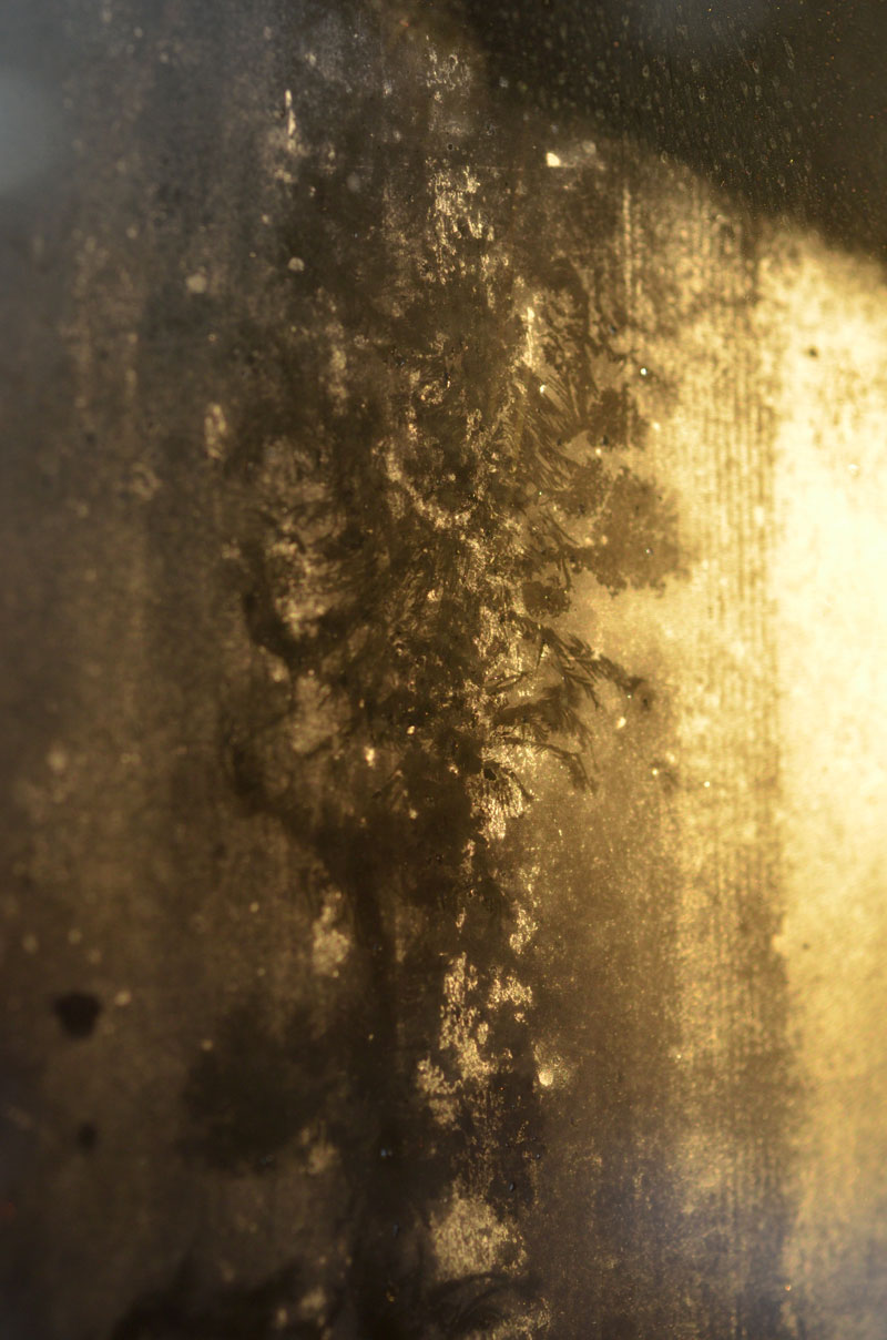 I have made several hundred photographs of frost on this window over the years, some of which are posted here , but I hadn’t really noticed the traces that are left behind as it disappears.