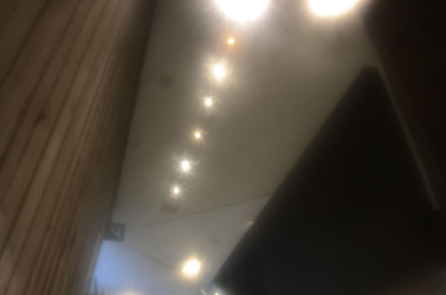 An interesting little shelter where you can wait for a bus or a free shuttle to take you to the subway system for a convenient commute. Note the industrial pieces on the ceiling re-purposed as integrated art.