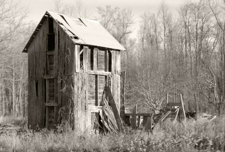 I came across these little out-buildings when I was taking a “road less traveled” the other day. Maybe it’s because I spent many idyllic hours as a child in similar rickety old buildings that I find these so intriguing. Of course they don’t look very safe, but that’s part of the attraction.