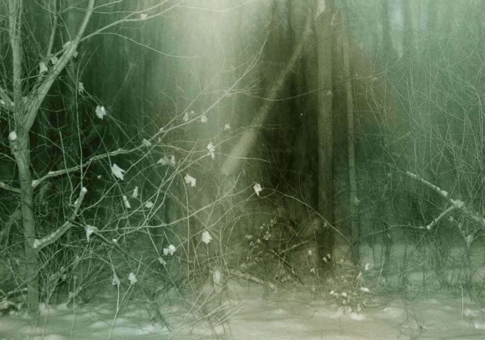 These are a few images from a snowy winter evening when I went out to just play. No expectations or specific ideas – in my mind I was simply sketching the night and following my intuition as I experimented. I made setting adjustments as the camera gave me feedback. At times I used flash to capture the snowflakes and elements in the foreground along with exposures lasting several seconds, and at times also moving the camera to see what might happen.